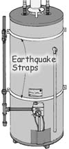 When there are earthquakes, water heaters will often fall over. All water heaters should be anchored to walls. These straps should be heavy steel, not flimsy 'plumbing straps'. A standard water heater can easily weigh over 400 pounds and plumbing straps are inadequate. Most people only worry about gas powered hot water heaters, but we are concerned with all of them. An electric heater that falls over will cause a huge leaking mess not to mention the power connected is typically 20 amps 240 volts! This can easily kill anyone that comes in contact with an electrified puddle. |